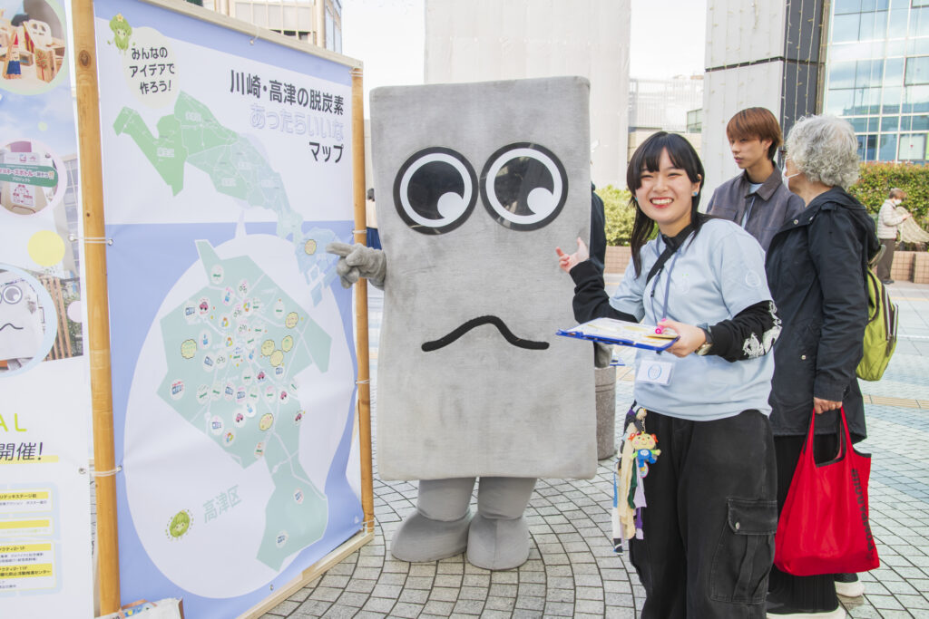 11月8日、溝口駅周辺で脱炭素アクションみぞのくちイベント「まるっとサステナフェスティバル」を開催しました。川崎市環境局の委託で3年目となる今年、わたしの脱炭素アクションをテーマにしたグラフィック、ショートムービーなどをまるっとさすてねCAMPインターンが中心となり、脱炭素に向けた市民の行動変容をアピールしました。